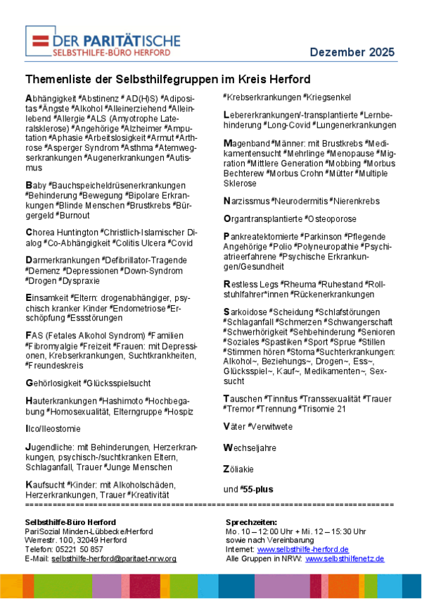 Sie suchen eine Selbsthilfegruppe im Kreis Herford?